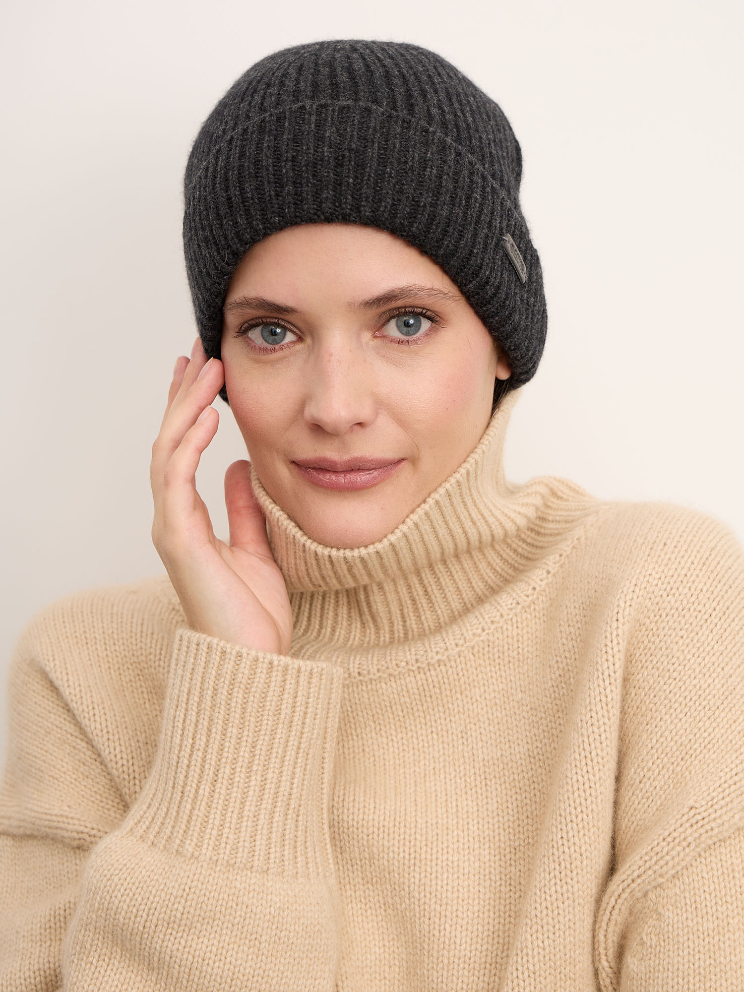 Шапка из кашемира в оттенке антрацит — это идеальное сочетание минимализма, практичности и природной элегантности.