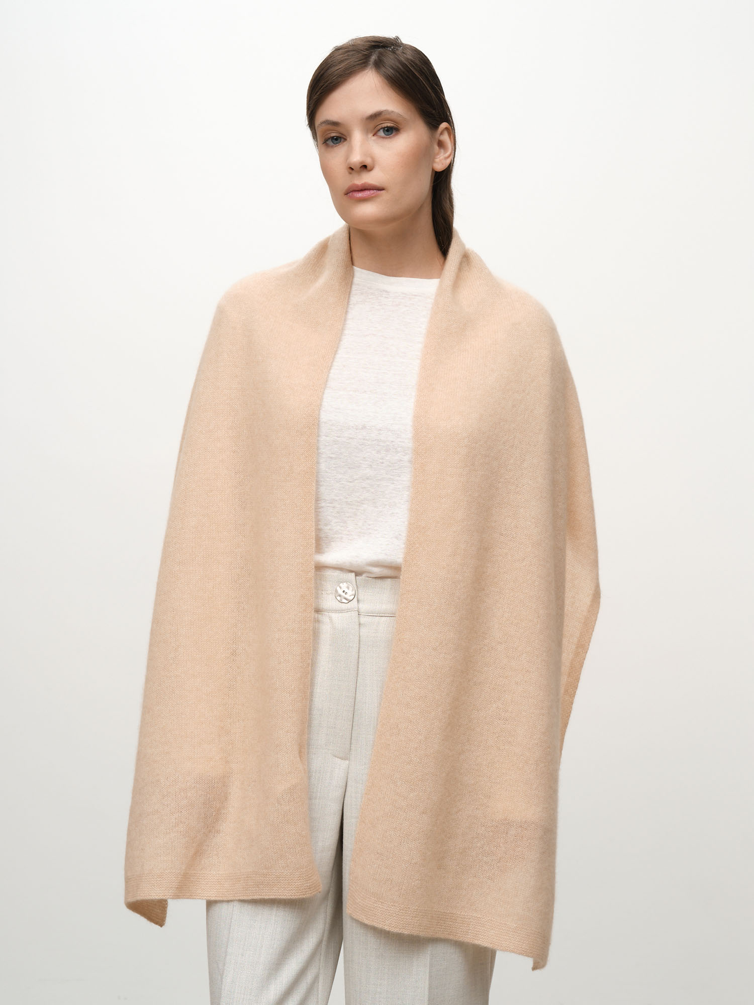 100% кашемир чувствуется в каждом прикосновении. Бежевый цвет универсальный, подходит практически ко всему. Очень довольна качеством!