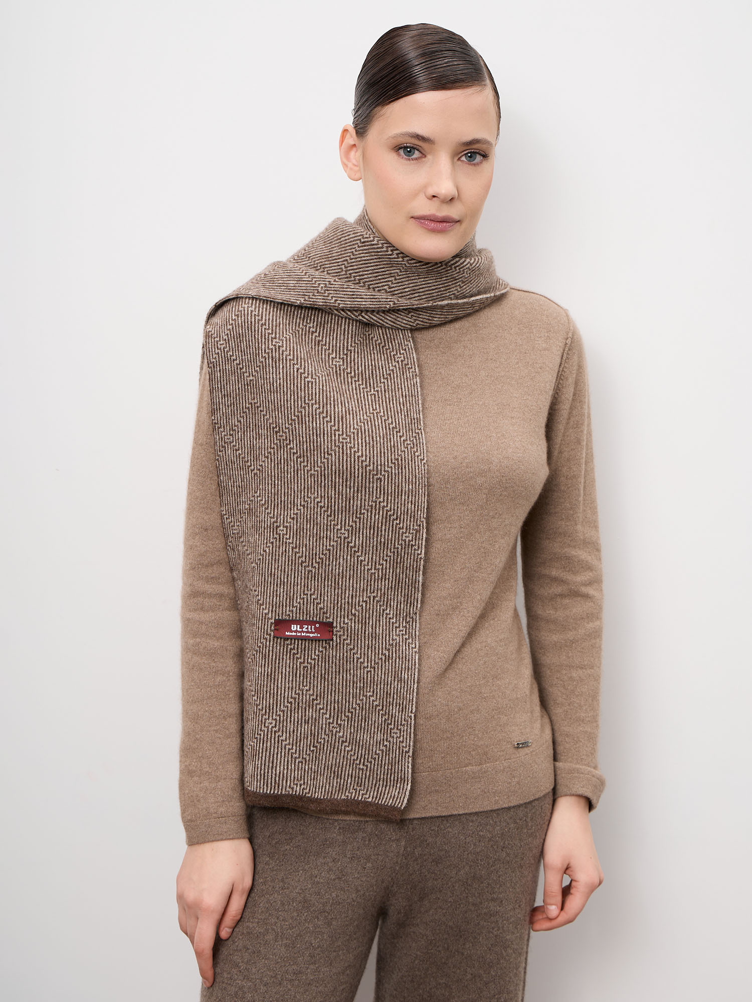 Шарф из шерсти UL Geo в коричневом оттенке — стильный и универсальный аксессуар, который идеально дополняет осенне-зимний гардероб. Лаконичный дизайн и выразительная фактурная вязка придают модели современный и элегантный характер. Шарф легко сочетается с пальто, куртками и трикотажем, создавая уютный и гармоничный образ.