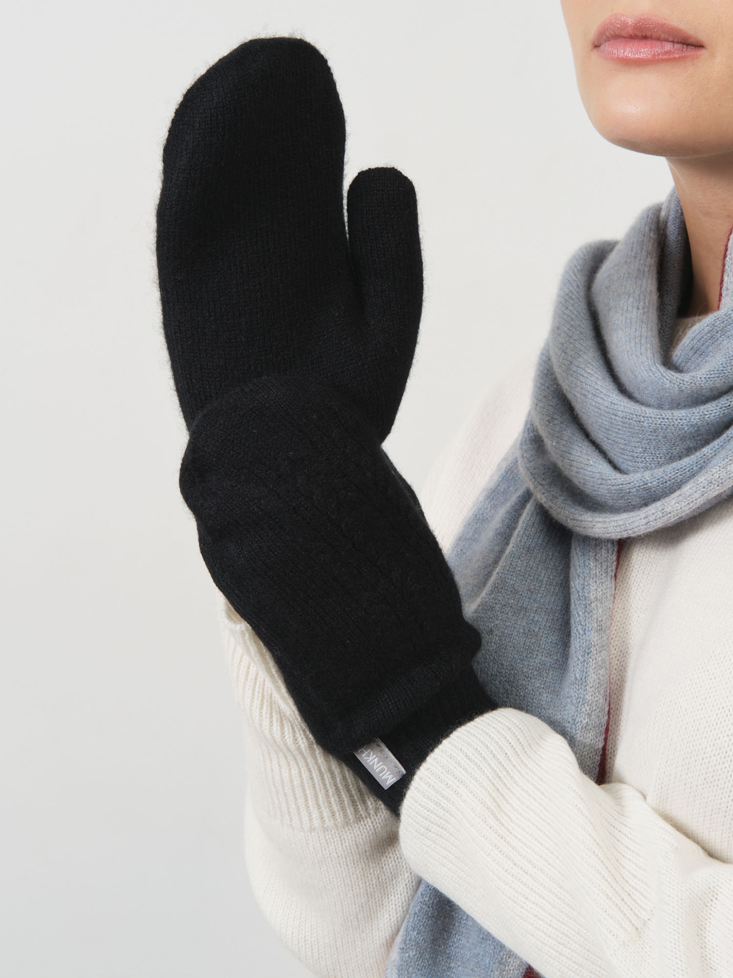 Варежки выполнены из натурального кашемира — премиального материала с исключительной мягкостью и высокой теплоизоляцией. Тонкое волокно эффективно сохраняет тепло, оставаясь лёгким и «дышащим». Кашемир гипоаллергенен и обеспечивает комфорт даже при длительной носке