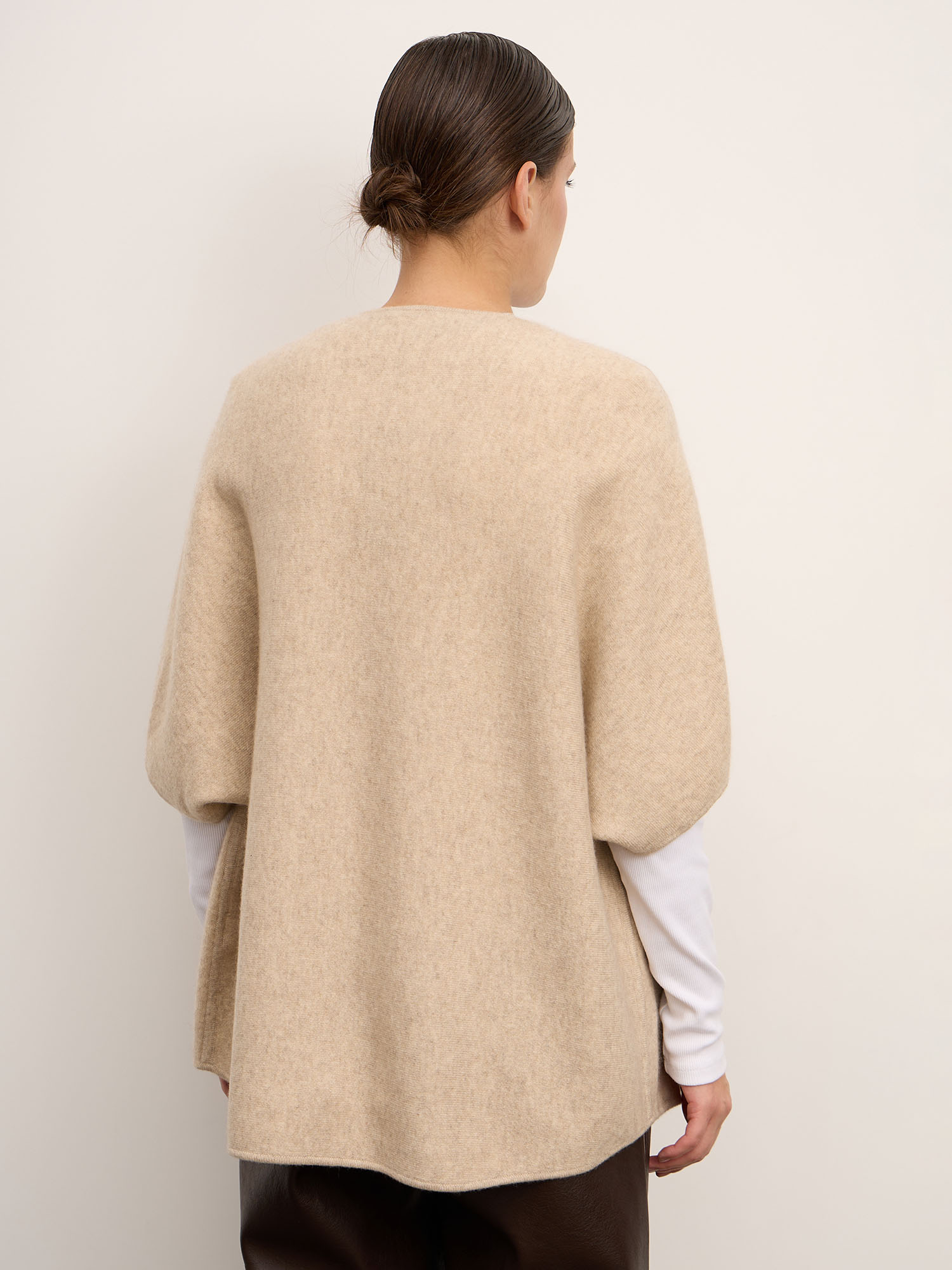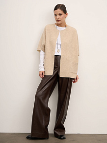 Свободный крой без застёжек, прямые линии, минималистичный стиль. Пончо удобно надевать поверх водолазок, джемперов и рубашек.