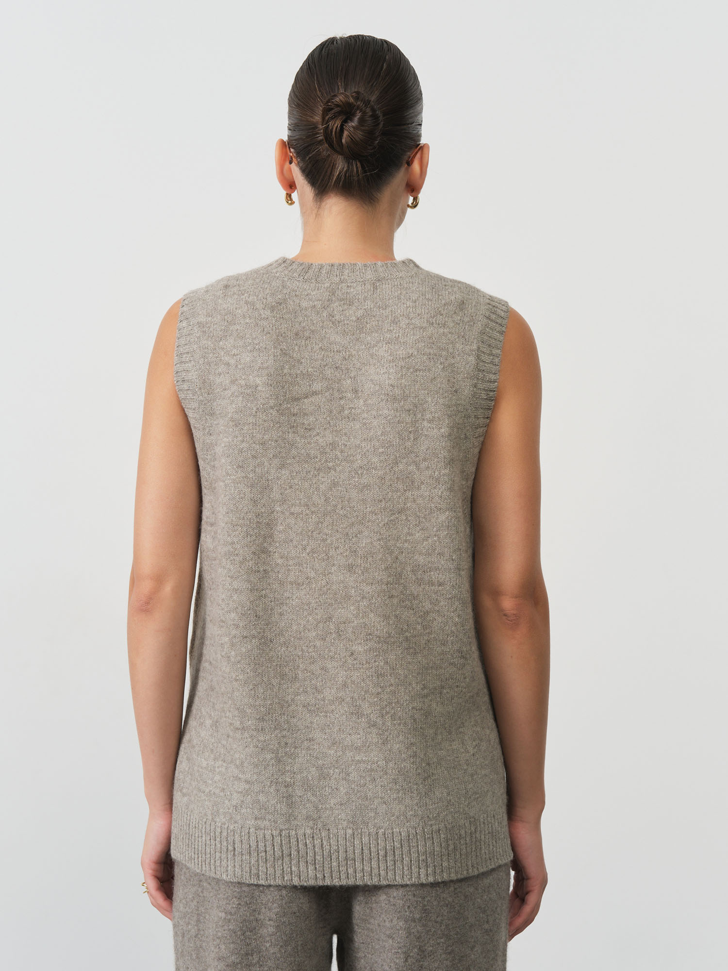 Модель выполнена без рукавов с круглой горловиной. Минималистичный крой подчёркивает современный стиль изделия и делает его удобным для сочетания с рубашками, водолазками или базовыми топами.