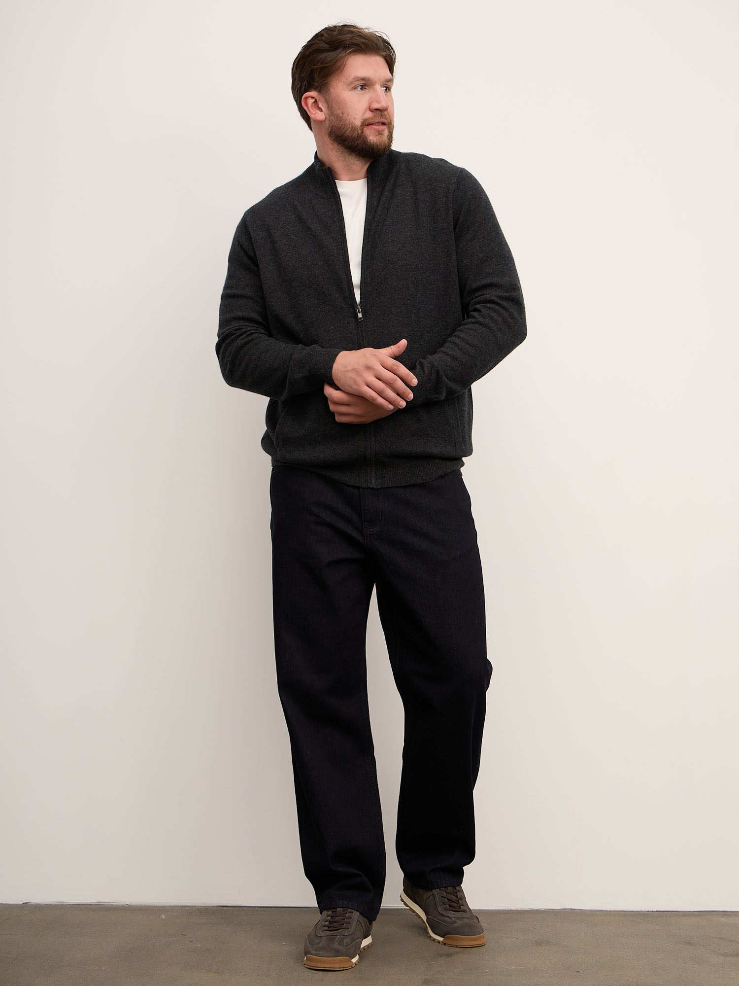 Мужской джемпер из кашемира на молнии — практичная и стильная модель для повседневного гардероба. Сочетает комфорт, функциональность и современный минимализм.