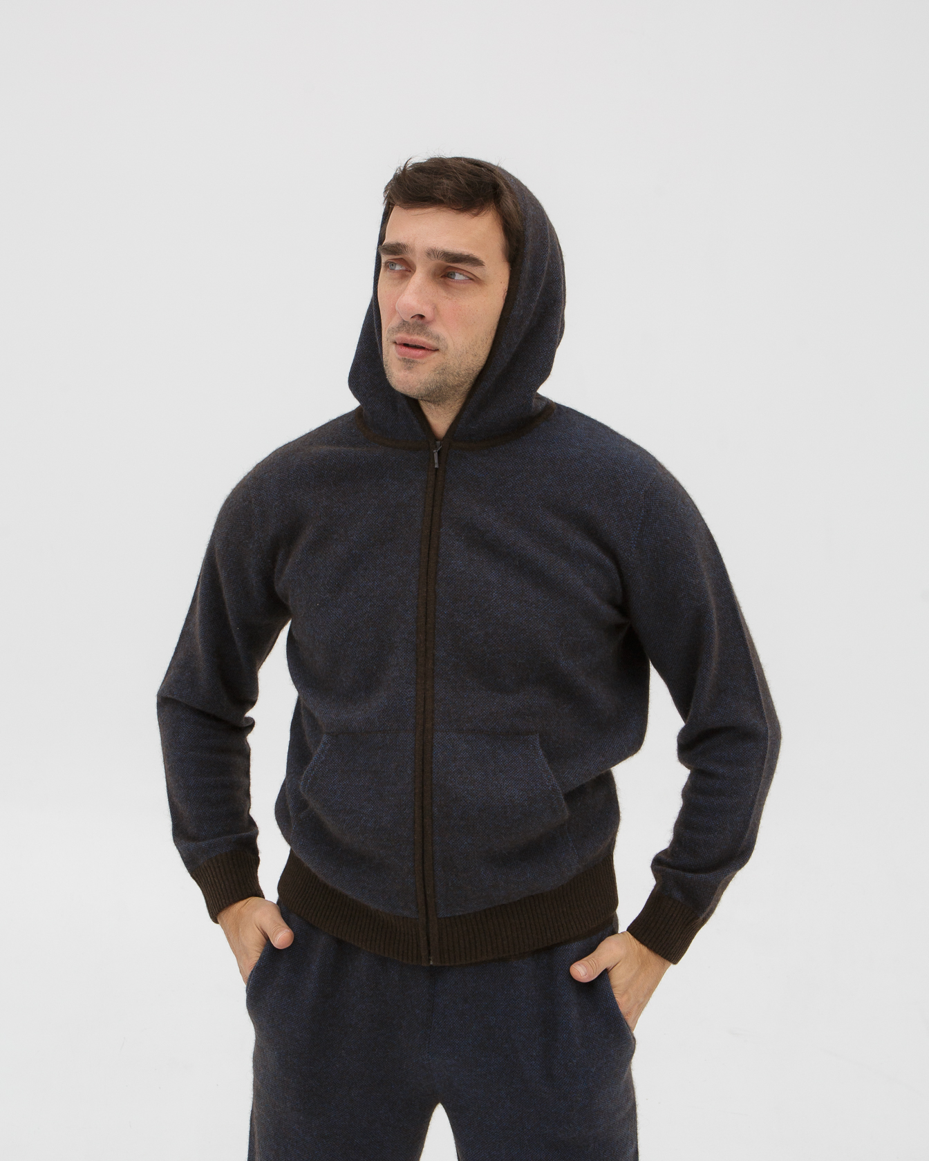 Джемпер из пуха яка и верблюда с капюшоном 4179 синий