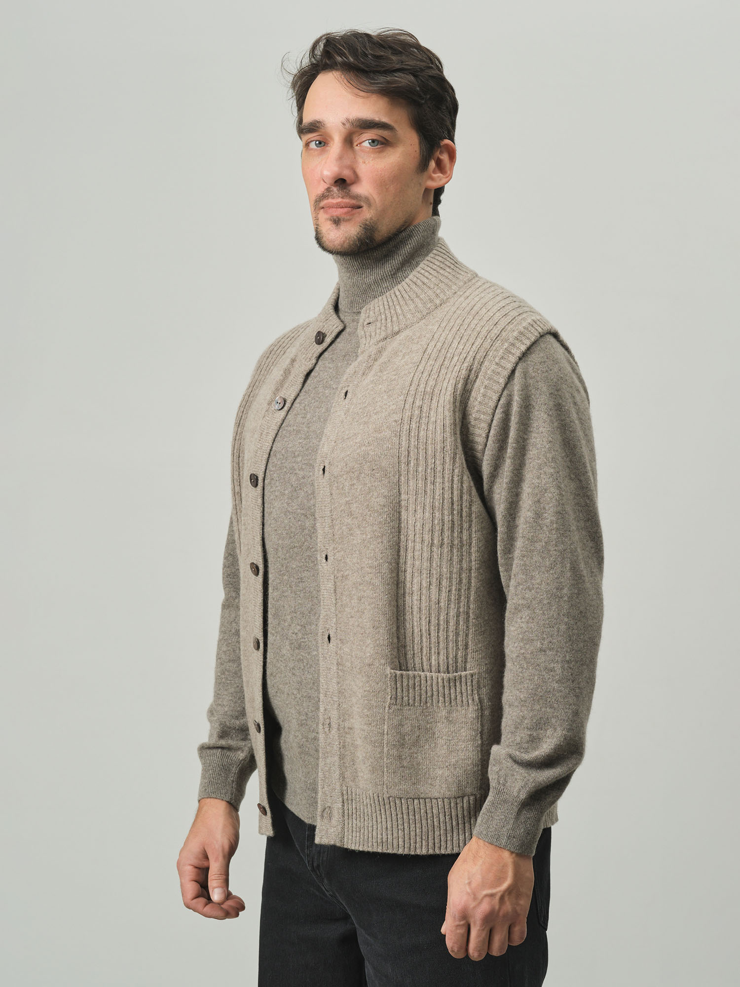 Дополните свой гардероб этим элегантным жилетом из шерсти яка – практичным решением для создания стильных многослойных образов в любое время года!