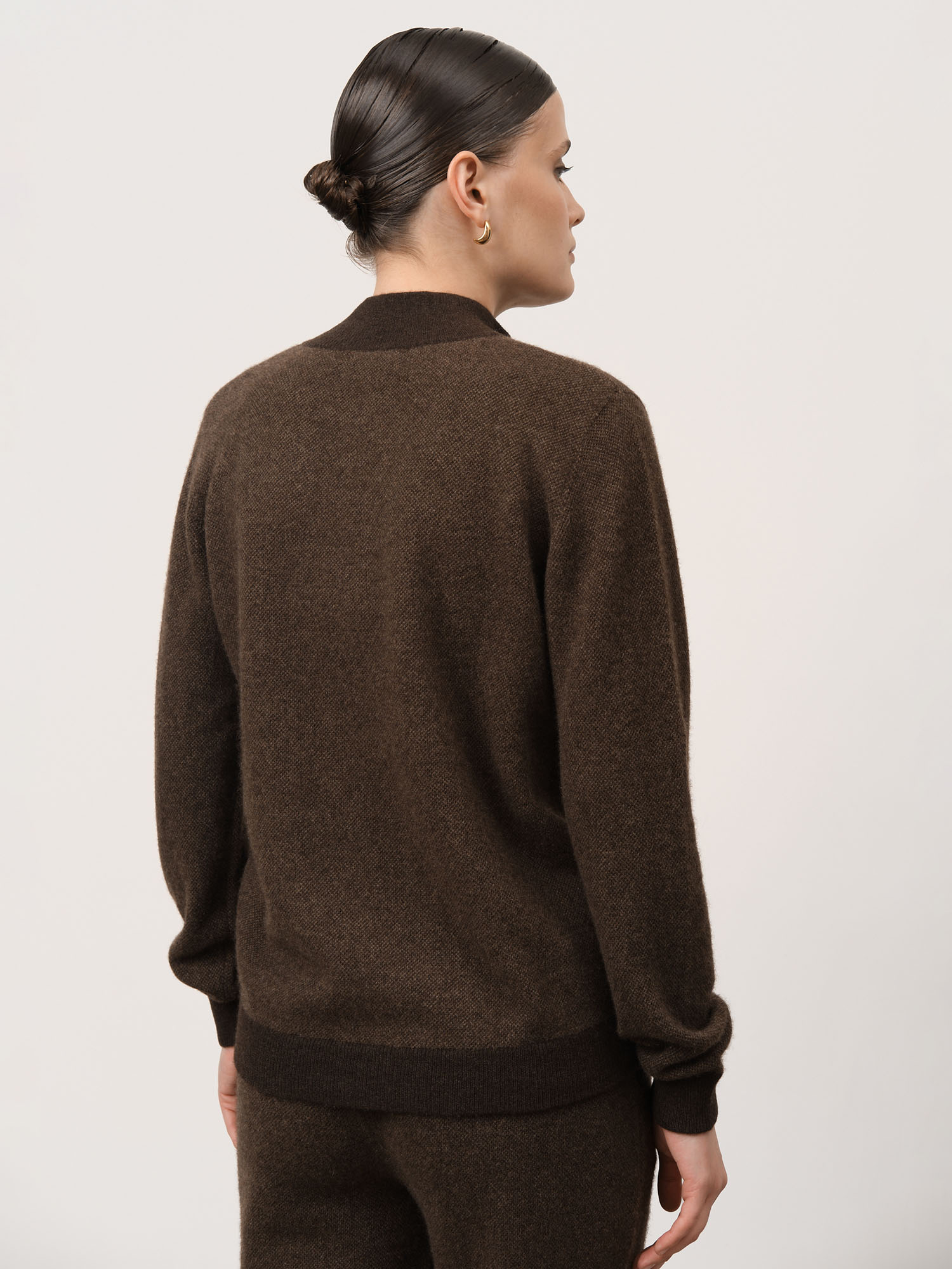 Модель выполнена в формате джемпера на молнии с высоким воротником. Минималистичный крой делает изделие универсальным и удобным для повседневной носки.