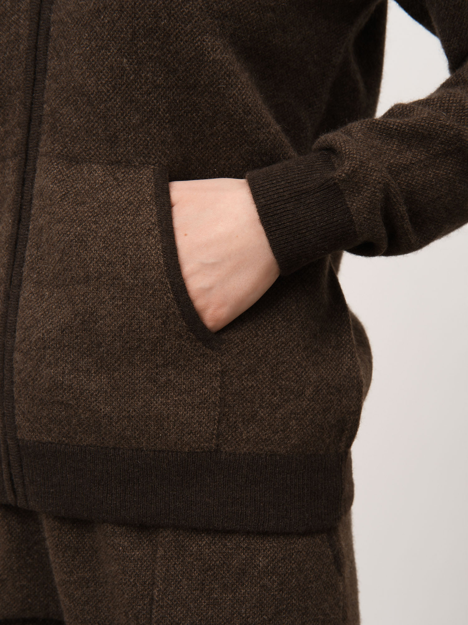 Коричневый — глубокий натуральный оттенок, который подчёркивает текстуру материала и легко сочетается с базовой цветовой гаммой гардероба.