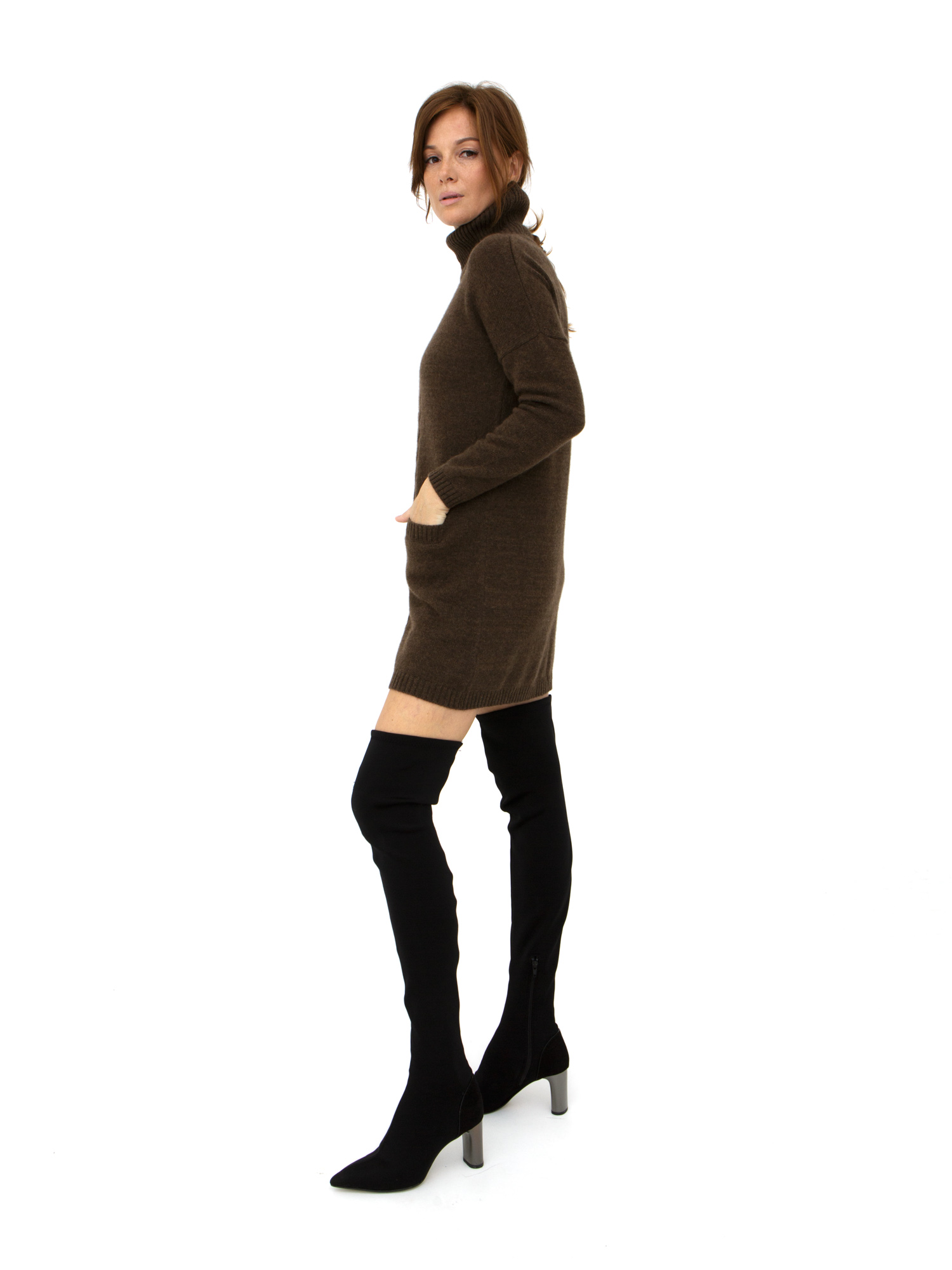 Элегантный женский джемпер-платье из пуха яка в стильном темно-коричневом цвете — идеальное решение для холодного времени года. Этот джемпер-платье сочетает в себе непревзойденное тепло, комфорт и модный дизайн. Высокий воротник-стойка и декоративные косы на передней части добавляют изделию утонченный стиль, а два удобных кармана делают его практичным для повседневной носки.