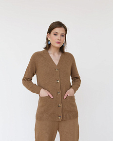Женский кардиган из шерсти верблюжонка — тёплая и уютная модель с элегантным силуэтом. Натуральный материал и лаконичный дизайн делают изделие универсальным элементом гардероба, идеально подходящим для повседневных и расслабленных образов.