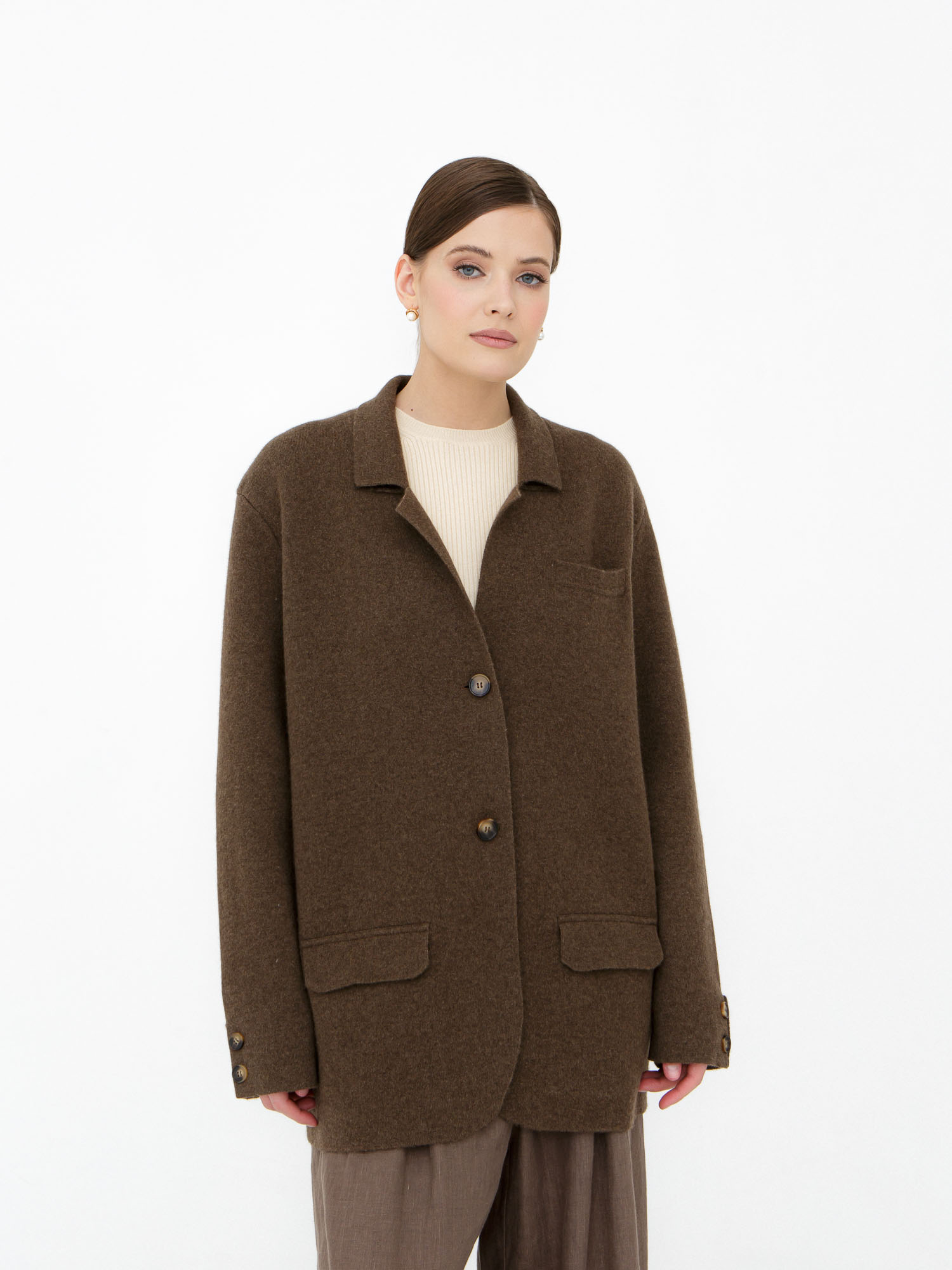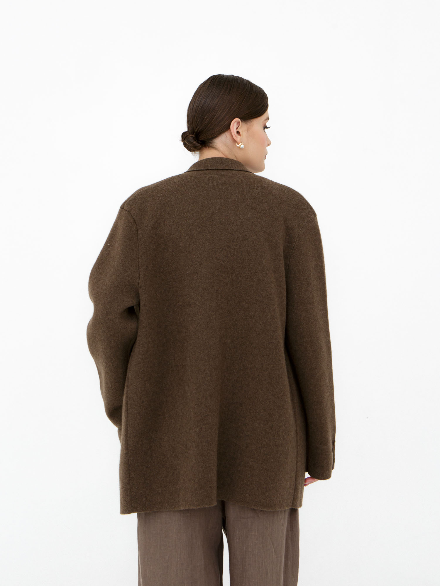 Элегантный силуэт жилета с аккуратным воротником и практичными карманами делает его универсальным элементом гардероба. Благородный коричневый оттенок легко сочетается с различными стилями – от классического до casual. Этот жилет прекрасно дополнит как деловой костюм, так и повседневный образ с джинсами.