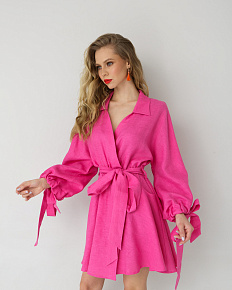 Платье льняное фуксия 26004