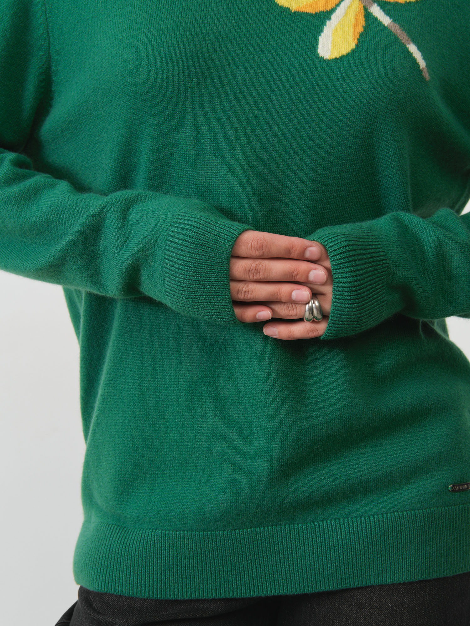 Женский джемпер из натурального кашемира — изысканная и комфортная модель для повседневного и элегантного гардероба. Мягкий, приятный к телу материал обеспечивает тепло и комфорт, а лаконичный дизайн с декоративным мотивом придаёт образу индивидуальность.