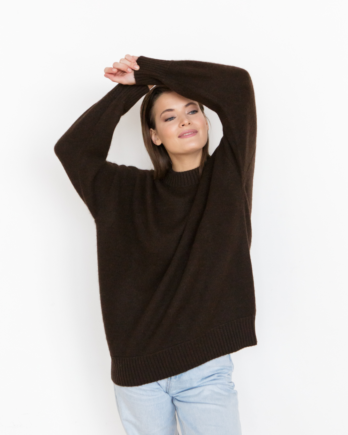 Джемпер из пуха яка — уютная и стильная модель для прохладного сезона. Натуральный материал и свободный силуэт создают ощущение мягкости и комфорта, а лаконичный дизайн делает изделие универсальным элементом повседневного гардероба. Джемпер легко сочетается с джинсами, брюками и юбками, формируя спокойные и элегантные образы.
