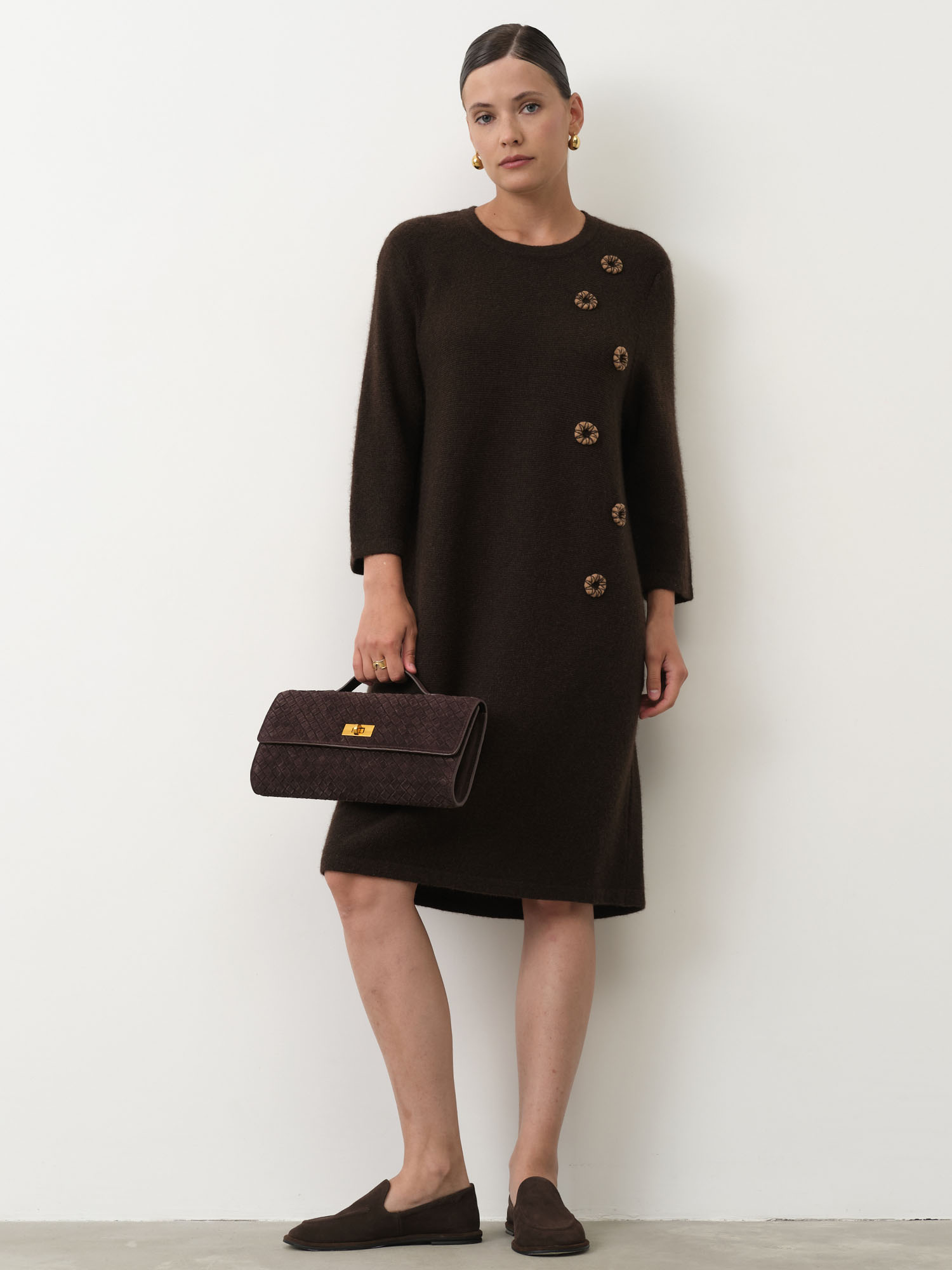 Платье отлично сочетается с лоферами, ботинками или сапогами. Подходит для повседневных и офисных образов, легко комбинируется с аксессуарами и верхней одеждой.