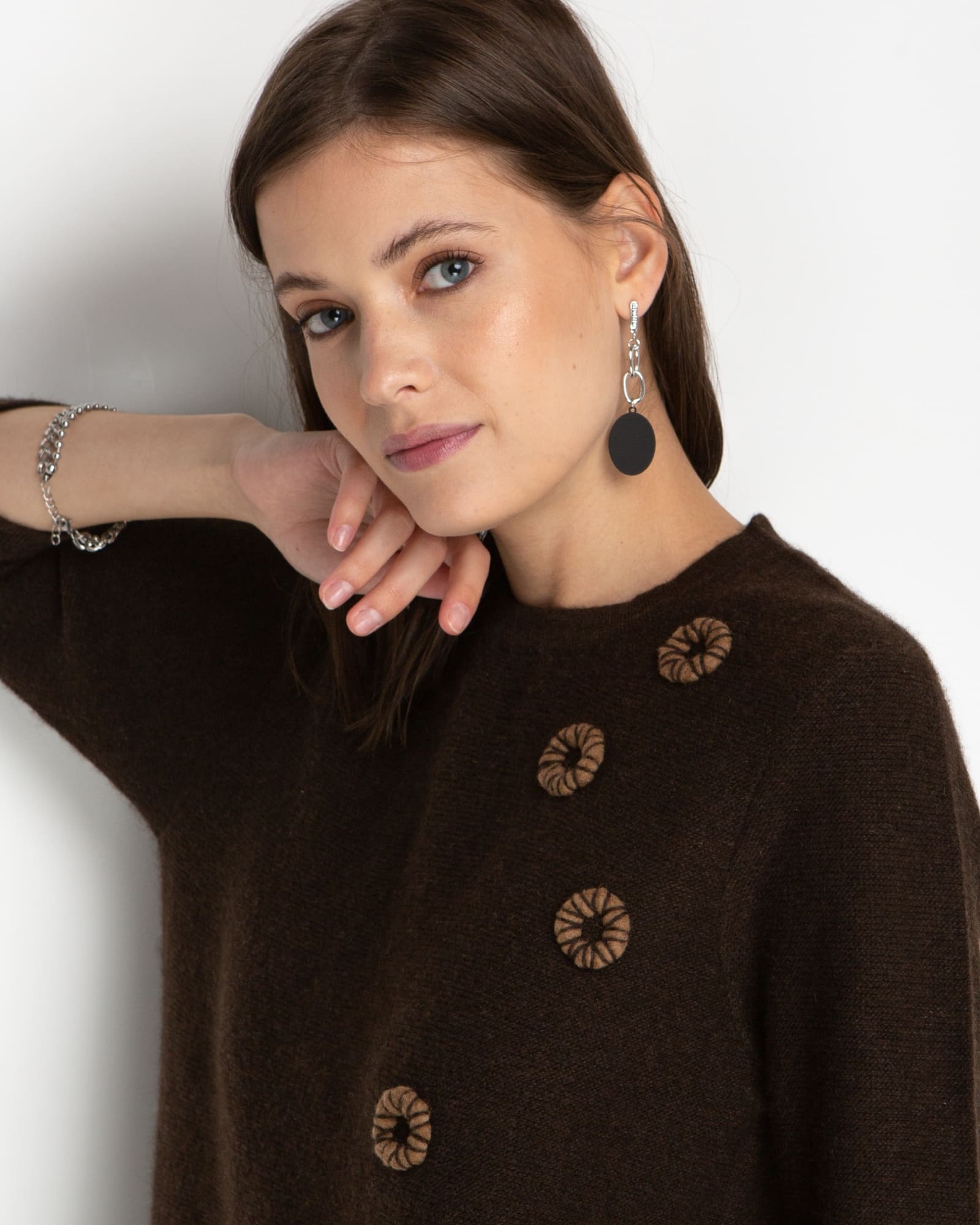 Декоративные пуговицы по линии плеча и груди, аккуратная трикотажная вязка, мягкая линия плеч и комфортная длина. Качественная обработка краёв обеспечивает долговечность изделия.