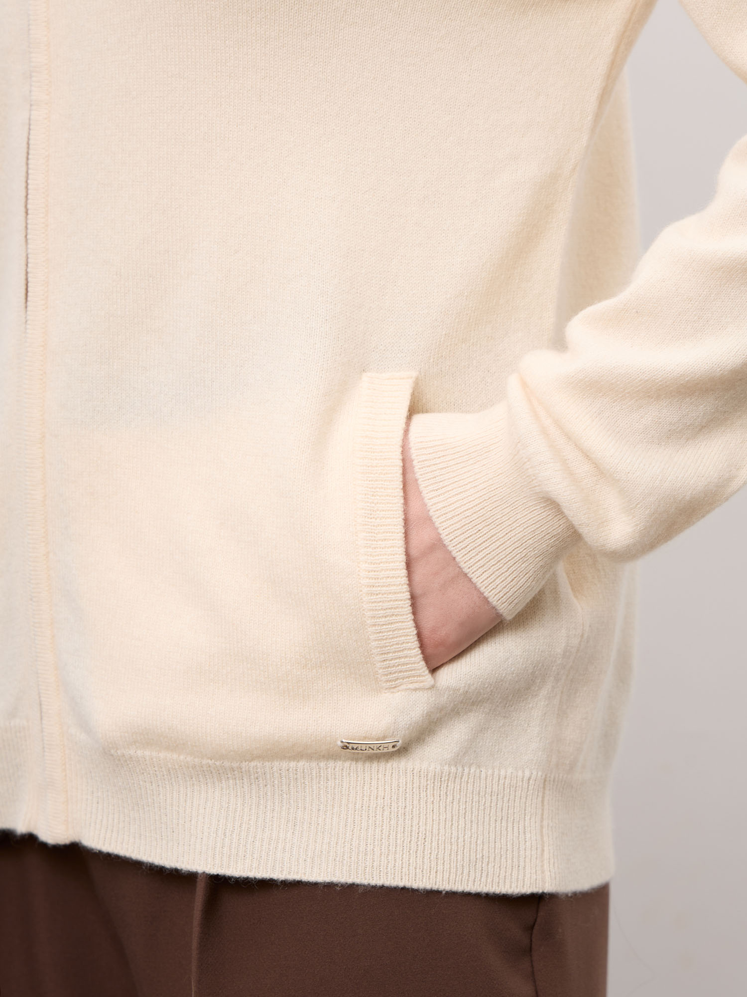 Элегантный кардиган из натурального кашемира — универсальная модель для создания спокойных, утончённых образов. Кремовый оттенок подчёркивает мягкость материала и легко сочетается с базовым гардеробом. Кардиган подходит как для повседневных, так и для более аккуратных офисных комплектов.